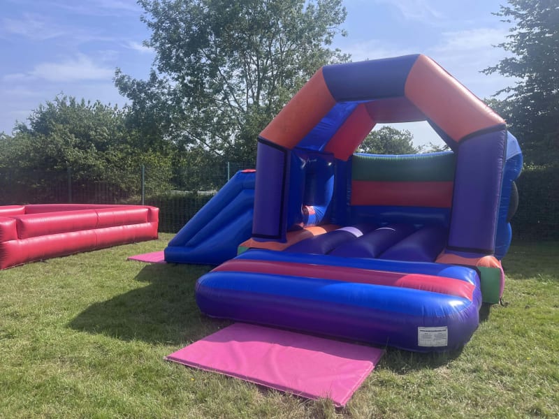 Bring the wow-factor to your child's party with our *Multi-coloured Bouncy Castle with Slide*! 💙🎉
