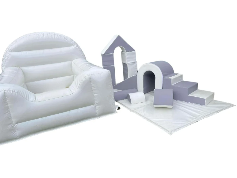 Create a beautiful and modern play space with our elegant white inflatable ball pit and white/grey soft play shapes. Perfect for toddlers and young children, this chic set combines fun and safety with a clean, neutral look that suits any theme or event.